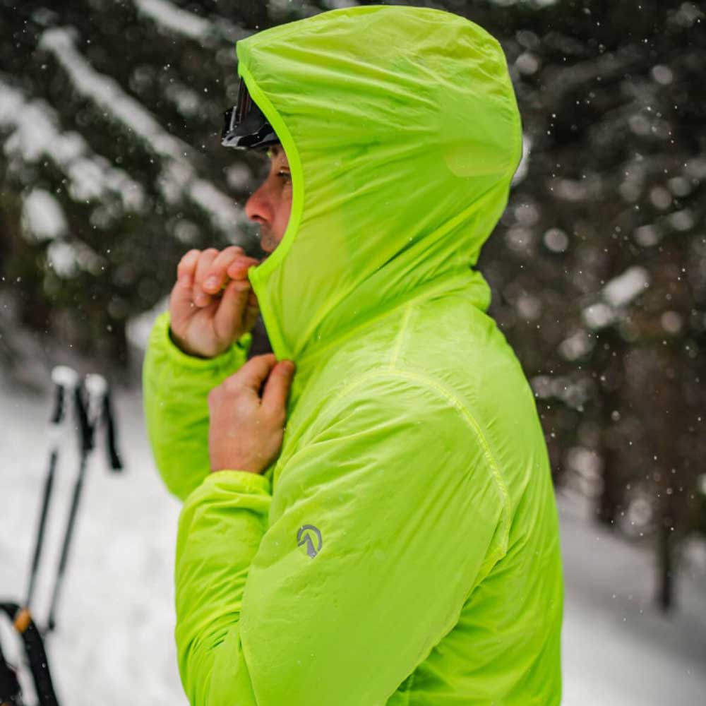 - Simple, ultra-light, packable (emergency) all-weather jacket for active athletes.