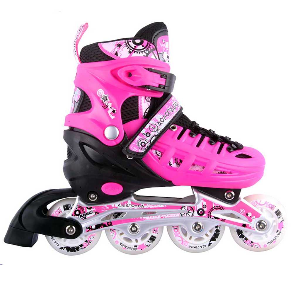 Παιδικά πατίνια inline skates αυξομειούμενα. Το μέγεθος ρυθμίζεται έτσι ώστε να μην απαιτείται η αντικατάστασή τους καθώς το πόδι των παιδιών μεγαλώνει. Με μπότα πλαστική που κρατά το πόδι σταθερό, άξονες αλουμινίου, ροδάκια που φωτίζονται κατά την κίνηση και τσάντα μεταφοράς, αποτελούν την ιδανική επιλογή για αρχάρια ελαφριά παιδιά.