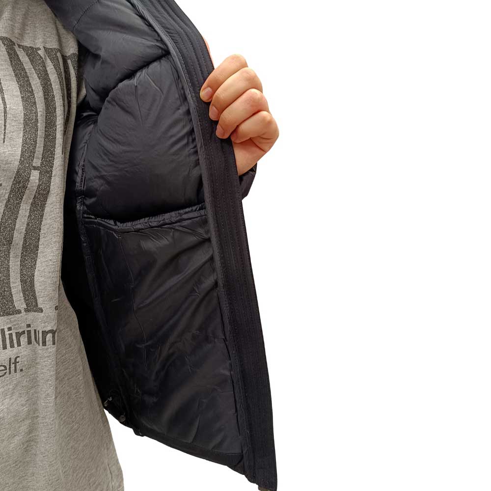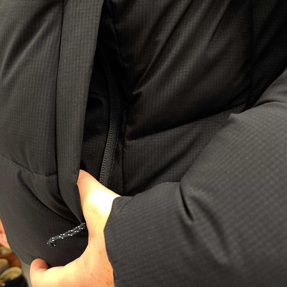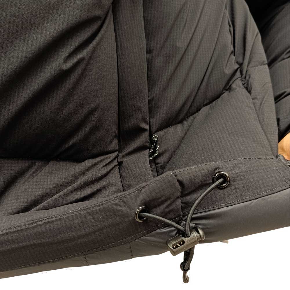 Το φινίρισμα στο κάτω άκρο του μπουφάν διαθέτει ελαστικό κορδόνι που μπορεί να τραβηχτεί προς τα κάτω ανάλογα με τις ανάγκες και να περιορίσει την είσοδο του αέρα στο σώμα.