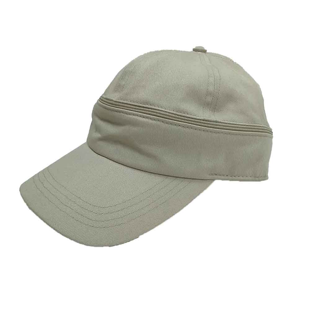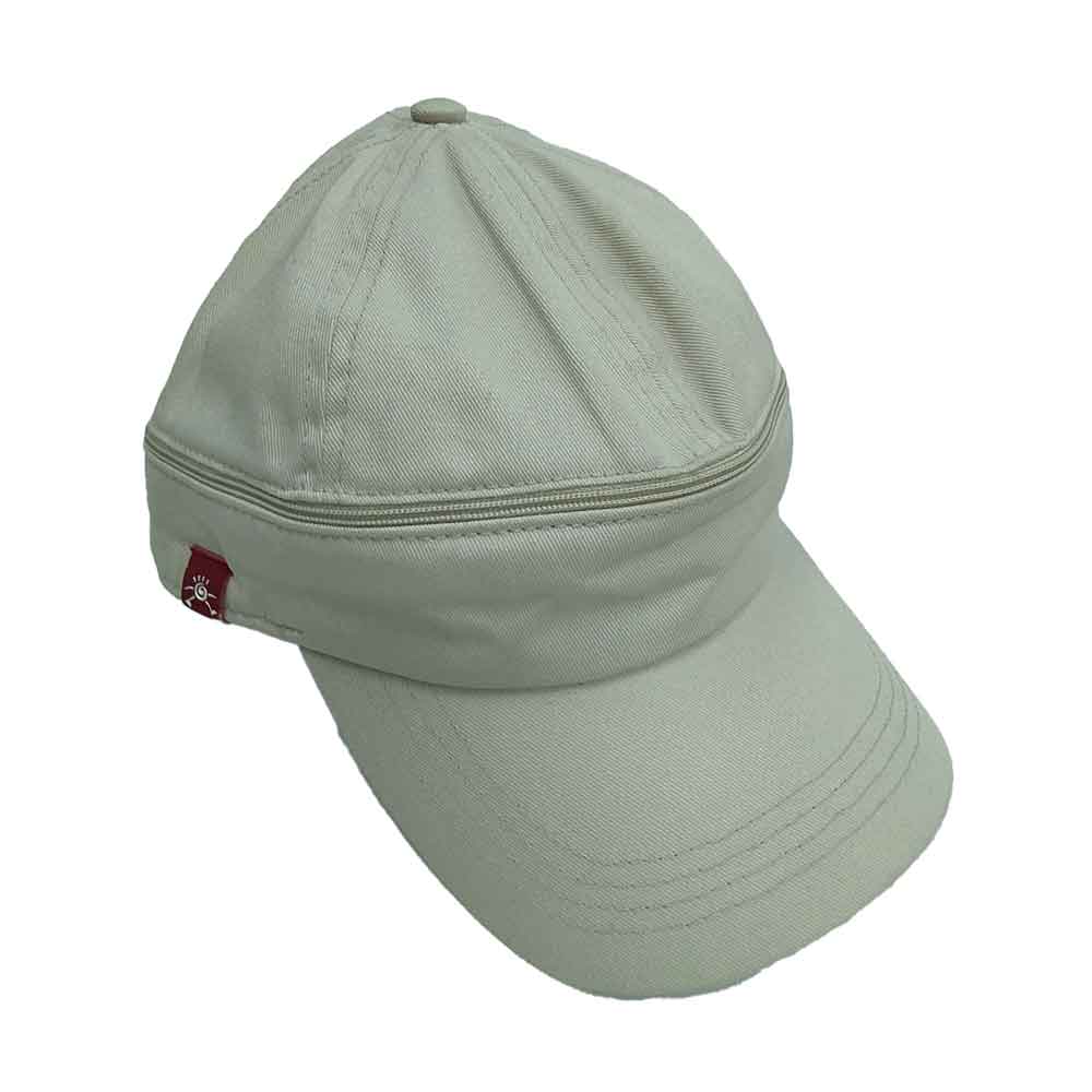 Καπέλο τζόκεϊ σε ανοιχτό μπεζ χρώμα για κορίτσια που τα θέλουν όλα! 2 σε 1…Το πρωί με τον έντονο ήλιο το φοράς κανονικά και το βραδάκι για στυλ, ξεκουμπώνεις το φερμουάρ και το φοράς μισό. Ιδανικό και για tennis!