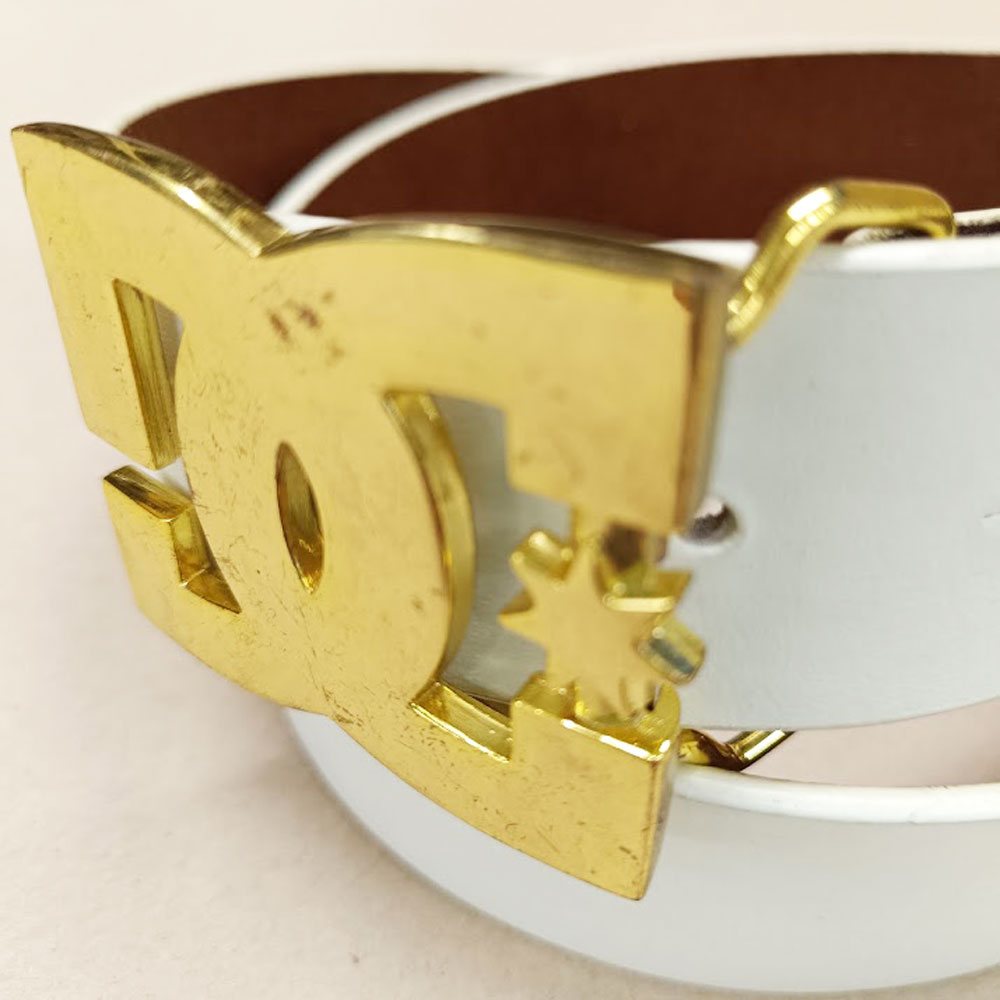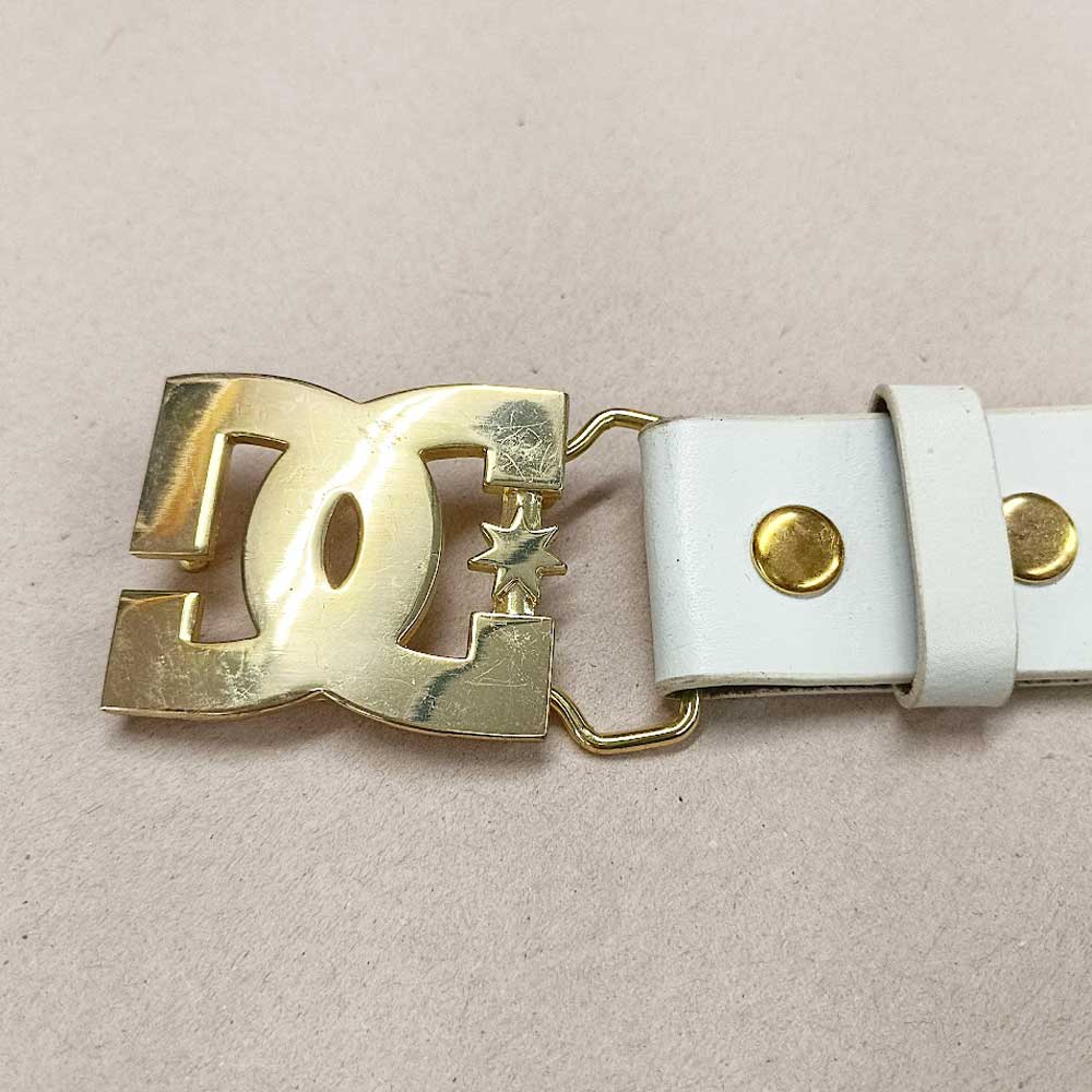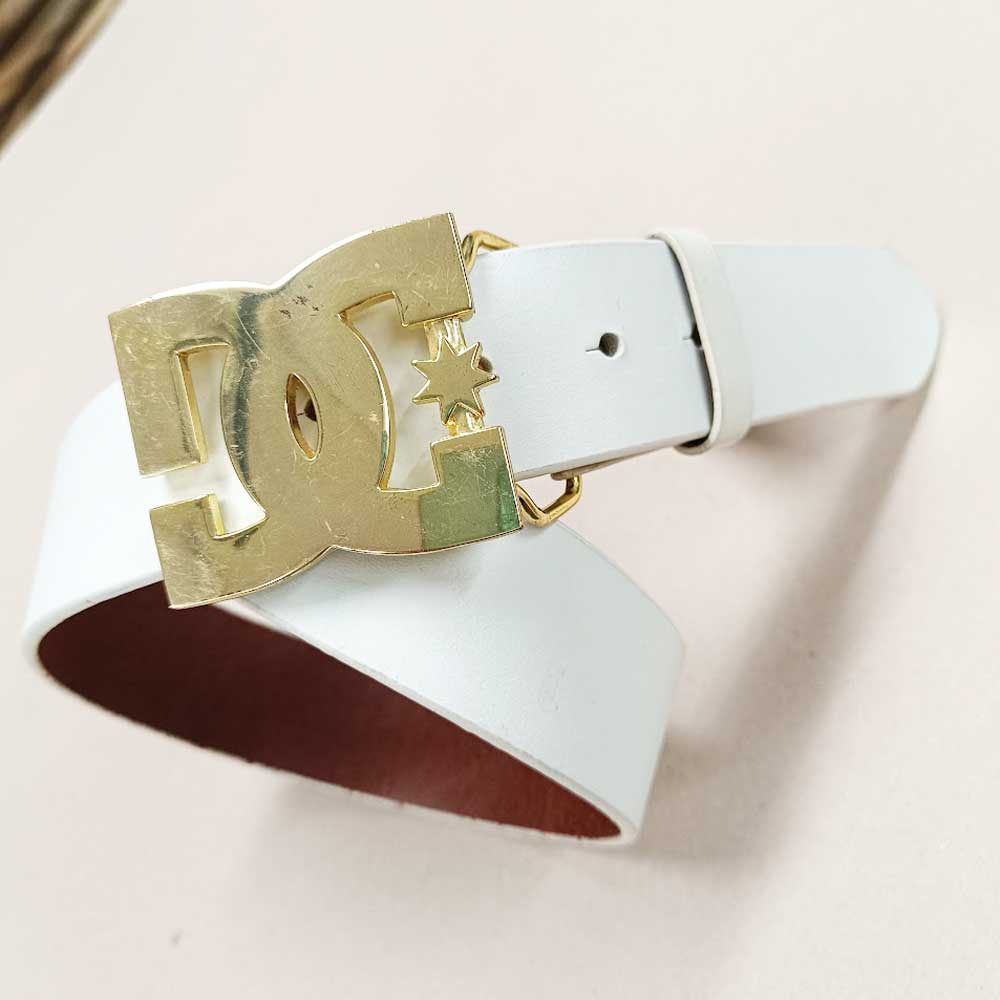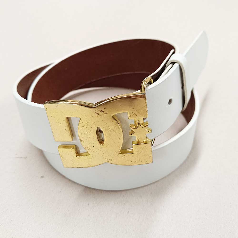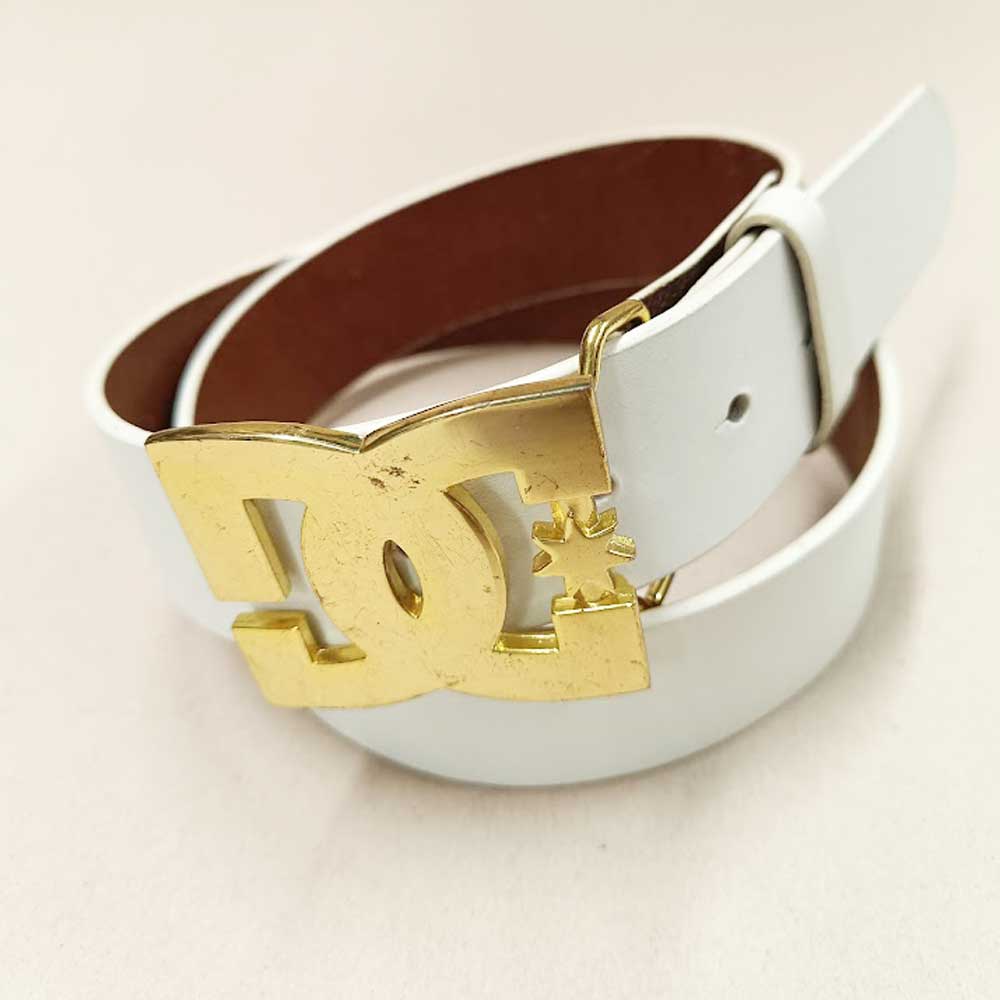 DC Shoes Offwhite Belt & Gold Metal Buckle Leather Vintage Belt